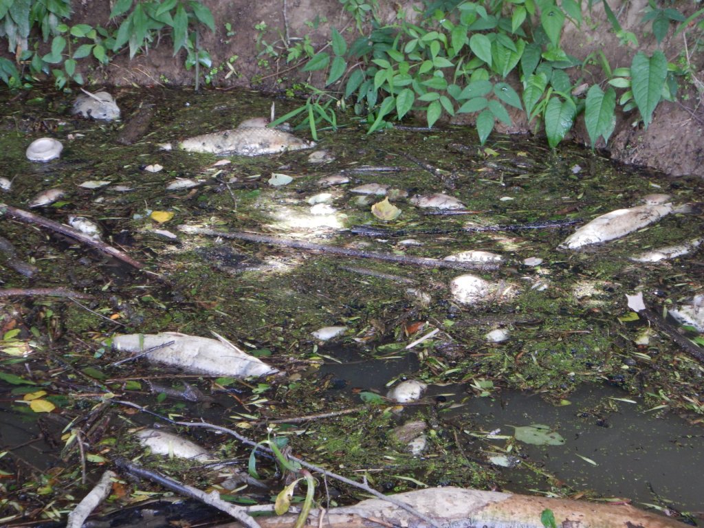 …..Fish and other animals that need oxygenated water to survive died by the thousands, creating several missing links in the Mulberry Fork food chain.